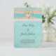 Heart and aqua ribbon border with baby's breath on lace on peach border for wedding invite