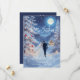 The design, carefully crafted with soft and detailed strokes, highlights the forest and vegetation, integrating festive elements that add a charming and elegant touch. The composition conveys a romantic, mystical, and refined vibe, ideal for those seeking a card with a distinctive and memorable style.