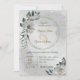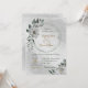 Unique wedding invitation featuring romantic white flowers and green leaves.