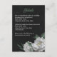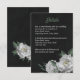 Unique wedding enclosure card featuring romantic white flowers and green leaves on black background.