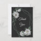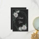 Unique wedding thank you card featuring romantic white flowers and green leaves on black background.
