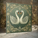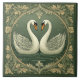 Romantic White Swan Couple Art Deco Pond Green Sea Tile