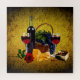 Romantic wine glass, bottle, cheese, grapes, gold jigsaw puzzle