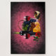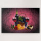 Romantic wine glass, bottle, cheese, grapes, pink jigsaw puzzle