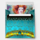 Original contemporary watercolor painting with golden foil and iridescent colours in bright green,yellow orange , teal,turquase, white .Elegant ,beautiful sophisticated brunette woman,red,green sparkling gold fabrics of a baroque costume with peacock feathers .Painting by Bulgan Lumini (c).This cool and artistic card is perfect for weddings,bridal showers,sweet 16,quinceanera birthday parties,costumed dance balls,,romantic engagements,save the date announcements,cocktails,celebrations,anniversaries,gatherings,