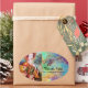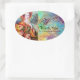 ROMANTIC WOMAN WITH SPARKLING PEACOCK FEATHER OVAL STICKER