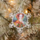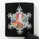 ROMANTIC WOMAN WITH SPARKLING PEACOCK FEATHER SNOWFLAKE PEWTER CHRISTMAS ORNAMENT
