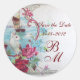 ROMANTICA MONOGRAM,Save the Date,white Classic Round Sticker
