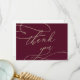 Ce carte de remerciements plat romantique de calligraphie bordeaux est parfait pour un mariage simple. Le design classique moderne comprend des tourbillons fantaisistes et des fleurs fantaisistes avec une magnifique typographie de feuille d'or en faux champagne. Ces cartes peuvent être utilisées pour un mariage, une douche nuptiale ou tout événement spécial. Remarque : Ce design ne comporte pas de véritable feuille d'or. C'est un graphisme de haute qualité fait pour ressembler à du papier doré.
