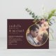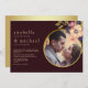 Célébrez votre amour avec ce faire-part de mariage bordeaux romantique aux élégants accents dorés, un design d'angle fleuri et une photo personnalisée. La riche palette de couleurs moody et les polices serif modernes en font un endroit idéal pour l'été et les mariage de automne. Parfait pour les couples à la recherche d'une invitation luxueuse et chaleureuse qui allie charme intemporel et touche personnelle.