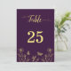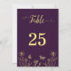 Carte unique simple numéro de table avec des fleurs d'or romantiques et élégantes sur arrière - plan violet POUR PLUS DE PRODUITS CORRESPONDANTS cliquez sur la collection ci-dessus ou contactez-moi.