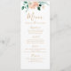 Une aquarelle romantique pêche à la végétation fleurie et botanique, élégante et romantique, de belles cartes de menu mariage pour mariage moderne, mariage romantique, et mariage de jardin botanique au printemps et en été. Voir toutes les pièces correspondantes dans la collection.
