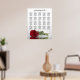 Cet élégant tableau de 20 places mariage présente une belle rose rouge reflétant dans l'eau avec des vagues et des ondulations. Le titre dit "s'il vous plaît trouvez votre table" dans la calligraphie de script dentée. Il y a de la place pour les noms du couple et la date du mariage. Ce graphique a des affectations de table pour 200 invités - 10 personnes par table.