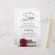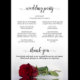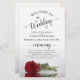 Ces programmes de mariage sont élégants et de bon goût, tout en étant toujours à l'aise avec le budget. Le design se compose d'une seule rose rouge à longue tige posée sur son côté, réfléchissant dans un bassin d'eau avec des vagues et des ondulations. La typographie présente une calligraphie en écriture noire dentée, et il y a de la place pour des détails sur la cérémonie, la fête de la mariée, et un bref merci.