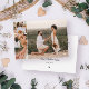 carte de remerciements mariage imprimé avec quatre de vos photos de mariage, trois plus petites photos de carré à côté d'une photo plus grande prise lors de votre journée spéciale. Carte de remerciements mariage double face avec une photo sur un côté et un message de remerciement imprimé sur l'autre en polices noires contre un arrière - plan blanc. Carte de remerciements avec une grande photo mariage et trois petites photos et merci en petites lettres à côté d'un coeur blanc. Merci à vos invités et de montrer vos photos préférées de mariage avec ce mariage photo collage imprimé avec un petit coeur mignon.