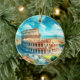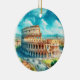 This tree ornament features a watercolor portrait of Rome, Italy.