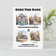 A plain, simple, modern yet elegant photo template has four square watercolor paintings on the front of The Trevi Fountain, St Peter's Cathedral, the Colosseum and the Spanish Steps in Rome. There are placed in groups of two above and below each other. The back has a single photo template for the wedding couples photograph plus a qr code for your own. Both the front and back have a black silhouette of a small airplane with a dotted line behind it showing its flight path and the back has a red destination location symbol for the name of the town you will be having your wedding at in Italy. If the qr code is not required, simply delete it. Personalize the editable templates to suit your requirements.
