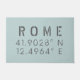 Stylish front doormat features Rome, Italy latitude and longitude map coordinates in modern urban text on light blue background