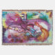 Balcony scene from Romeo and Juilet tragedy by William Shakespeare .Original contemporary watercolor painting with gold and iridescent colours in bright purple ,pink,green,yellow orange , teal,turquoise, white ..Painting by Bulgan Lumini (c)