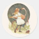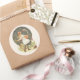 Autocollant rond avec une Alice vintage au pays des merveilles image d'Alice et du flamant. Voir confettis assortis, sac de faveur, étiquette carré fantaisie, étiquette et papier d'emballage. Voir l'ensemble de la collection Wonderland Sticker dans les INVITATIONS | Section Stickers & Étiquettes.