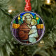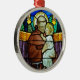 Un bel souvenir ou ornement contenant une image de St Anthony d'une conception de fenêtre en verre teinté.