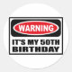 Avertissement C'EST MY 50TH BIRTHDAY Sticker vous pouvez customiser à www.WarningSignShirts.com et comporte un panneau rouge et noir d'avertissement et C'EST MY 50TH BIRTHDAY en lettres noires en gras pour avertir le monde. Vous pouvez également customiser votre propre panneau d'avertissement Sticker avec le texte que vous voulez.