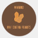 Ce bel autocollant a une photo d'arachides contre un arrière - plan brun profond. Le message est "Attention ! Peut contenir des cacahuètes". Profitez de votre nouvel avertissement peut contenir Peanuts Classic Round Sticker!