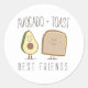 Un autocollant représentant une illustration d'avocat et un morceau de pain grillé avec des visages. Texte : "Avocado + Toast Best Friends."