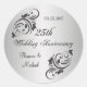25e anniversaire Mariage Sicker décoré de tourbillons noirs et de fleurs sur arrière - plan argent. Facile à customiser - il suffit de mettre vos noms et date.