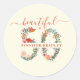 Stickers pour la 50ème fête d'anniversaire avec le message, "Beautiful" dans le script de calligraphie moderne "at" puis le nom de la fille d'anniversaire au milieu du numéro 50 (avec des lettres florales).