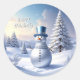 Rond Blue Hat Snowman Christmas Tree Holiday Sticker