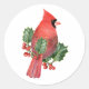 Vacances aquarelle autocollants de l'artiste Dolores Robak - Le cardinal du Nord mâle est incontestable, avec son plumage rouge vif et son masque noir. Ce bel oiseau rouge est encore plus saisissant perché parmi les feuilles verts et les baies rouges d'un arbre saint.