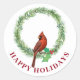 Ces autocollants ont un arrière - plan vert avec des lignes rouges et blanches qui forment un motif de carrés. Au centre il y a un cercle blanc avec une couronne à feuillage persistant et le cardinal.
