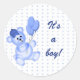Joli ours bleu avec son casquette tenant des ballons bleus. Le texte est personnalisable pour d'autres occasions.