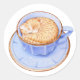 Illustration d'un chat en tabby au gingembre courbé doucement dans un café ou une tasse à thé. Distinctivement imaginatif et parfait pour les amateurs de toutes choses féline, ou liés à café ou tasses à thé!