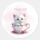 Rond Chaton en Coupe Sticker Fleurs Roses