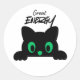 A cute minimalist sticker featuring a kawaii-style animal face with bright green eyes on a clean black background. Perfect for decorating laptops, journals, water bottles, phone cases, scrapbooks, and gifts. A fun, simple, and expressive design that adds personality anywhere. Created by Muneebelle Atelier.