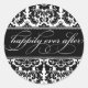 Heureusement après autocollant sur un arrière - plan damassé noir et blanc classe.