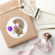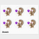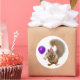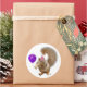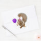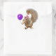 Un écureuil avec un casquette de fête tient un ballon violet. Cet autocollant d'anniversaire amusant ferait une étiquette cadeau amusante.