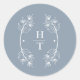 Rond Élégant Monogram Crest Dusty Blue Mariage Sticker