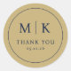 This elegant wedding sticker features a minimalist circular design with a beige background, highlighted by navy blue text. The layout includes bold serif typography for the initials "M | K" and the phrase "THANK YOU," creating a sophisticated and formal look. Perfect for expressing gratitude at your special event, this sticker combines clean lines and classic colors to convey an understated yet refined celebration mood. Its simple composition makes it ideal for adding a touch of elegance to wedding favors or thank-you notes.