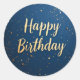 Rond Élégant Sticker d'anniversaire bleu foncé et or Fa