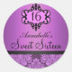 Rond Élégant Violet Chic Damask Sweet 16 Sticker