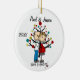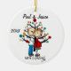 Assez autour de l'ornement en céramique de vacances de Noël de souvenir comporte un chiffre couple de bâton attendant un bébé se tenant devant un arbre de Noël décoré, et le texte qui nous lit "prévoient !". Vous pouvez personnaliser ce chiffre mignon ornement de bâton en ajoutant vos noms et année en cours !