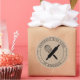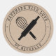 Élégant autocollant de produit pour votre envoi ou affichage de produit avec script "fait main avec amour" et illustration de monogramme et d'ustensiles de cuisson au milieu. Vous pouvez placer n'importe quel texte en bas et en haut. Consultez notre magasin pour plus d'articles de cette collection et ajoutez-le avec un timbre personnalisé pour vos articles faits à la main.