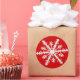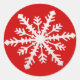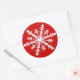Autocollant rond avec l'image d'un flocon de neige blanc sur rouge. Voir carte de voeux, étiquette, confettis et papier d'emballage correspondants. Voir la collection entière de Sticker de Noël sous la catégorie CARDS & STICKERS dans la section VACANCES.