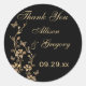 Cet autocollant ou sceau d'enveloppe de couleur or ambre de 1,5 po et floral noir a des papillons de parties scintillant en or en cuivre SIMULÉS et des vignes fleuries qui correspondent au faire-part de mariage ci-dessous. **REMARQUE, si vous changez vous-même la forme de l'autocollant, ou si vous changez les polices, ou la taille de la police, une partie de la conception et/ou du texte peut être coupée. Tout va s'imprimer comme vous le voyez sur votre écran. Je ne verrai pas les changements que vous faites, et Zazzle ne corrigera rien (fautes de frappe, mauvais alignement, etc.). Le texte est entièrement personnalisable. Si vous avez besoin d'aide pour ce produit, envoyez-moi un courriel AVANT de passer votre commande. Si vous avez besoin d'autres articles correspondants, veuillez envoyer votre demande par courriel à niteowlstudio@gmail.com