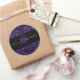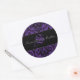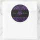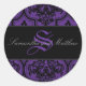 Impression damassée violette et noire avec effet grunge et étiquette mariage gothique monogramme.