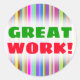 Ce design autocollant comporte un motif de rayures (ou de lignes) de différentes couleurs. Il présente également le message motivant "GRAND TRAVAIL !" en texte vert et rouge. Des autocollants comme ceux-ci pourraient peut-être être utilisés par des enseignants, des éducateurs ou des tuteurs pour reconnaître et encourager un étudiant qui a fait un excellent travail sur un test, un quiz, un papier, un projet ou une autre tâche académique. [~Z0000117]