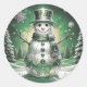 Rond Green Snowman Snowflakes Holiday Sticker